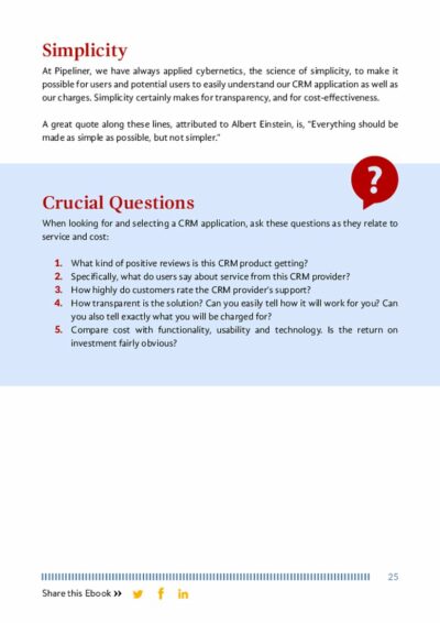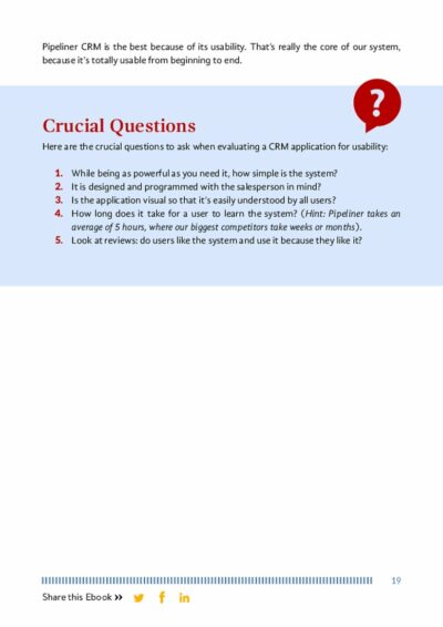 Selecting a CustomerCustomer Customer is an individual or an organization that purchases a product or signs up for a service offered by a business. Relationship Management (CRM) solution for your company is a major undertaking. This practical, down-to-earth guide is meant for the potential userUser User means a person who uses or consumes a product or a service, usually a digital device or an online service.—especially salespeople, who should at least be included in the CRM selection process. It covers the essential criteria for choosing a CRM, focusing on what matters most for the people who will actually be using the system to ensure success.