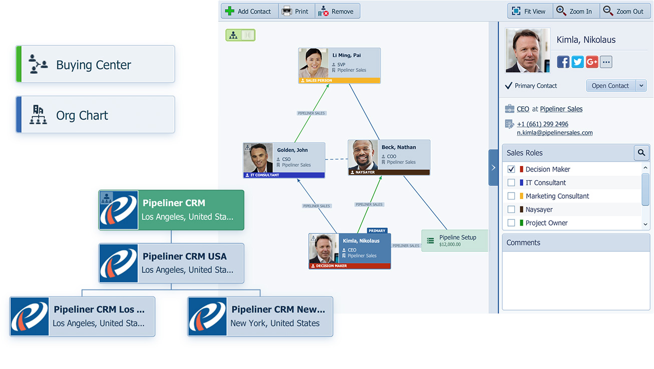 key contacts in an organizationOrganization Organization is a cohesive group of people working together and formally bound by a shared identity (e.g., one team, company, club, etc.) and a common purpose (e.g., business growth, athletic victory, etc.). for accountAccount Account refers to a record of primary and background information about an individual or corporate customer, including contact data, preferred services, and transactions with your company. management
