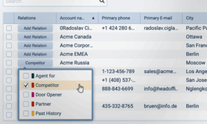 Accounts Relations: Visualize complex company connections (like partners & suppliers) with the Relation Graph. Gain strategic account intelligence.