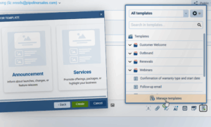 Pipeliner CRM Email Templates: Send perfectly personalized mass emails with speed. Use rich text, drag-and-drop, or full HTML. Includes AI content assistance, sharing controls, and real-data testing.