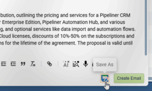 Stop typing, start selling! Voyager AI is your CRM-integrated assistant. It crafts, polishes, and personalizes professional emails using your Pipeliner data, all for free. Max efficiency.