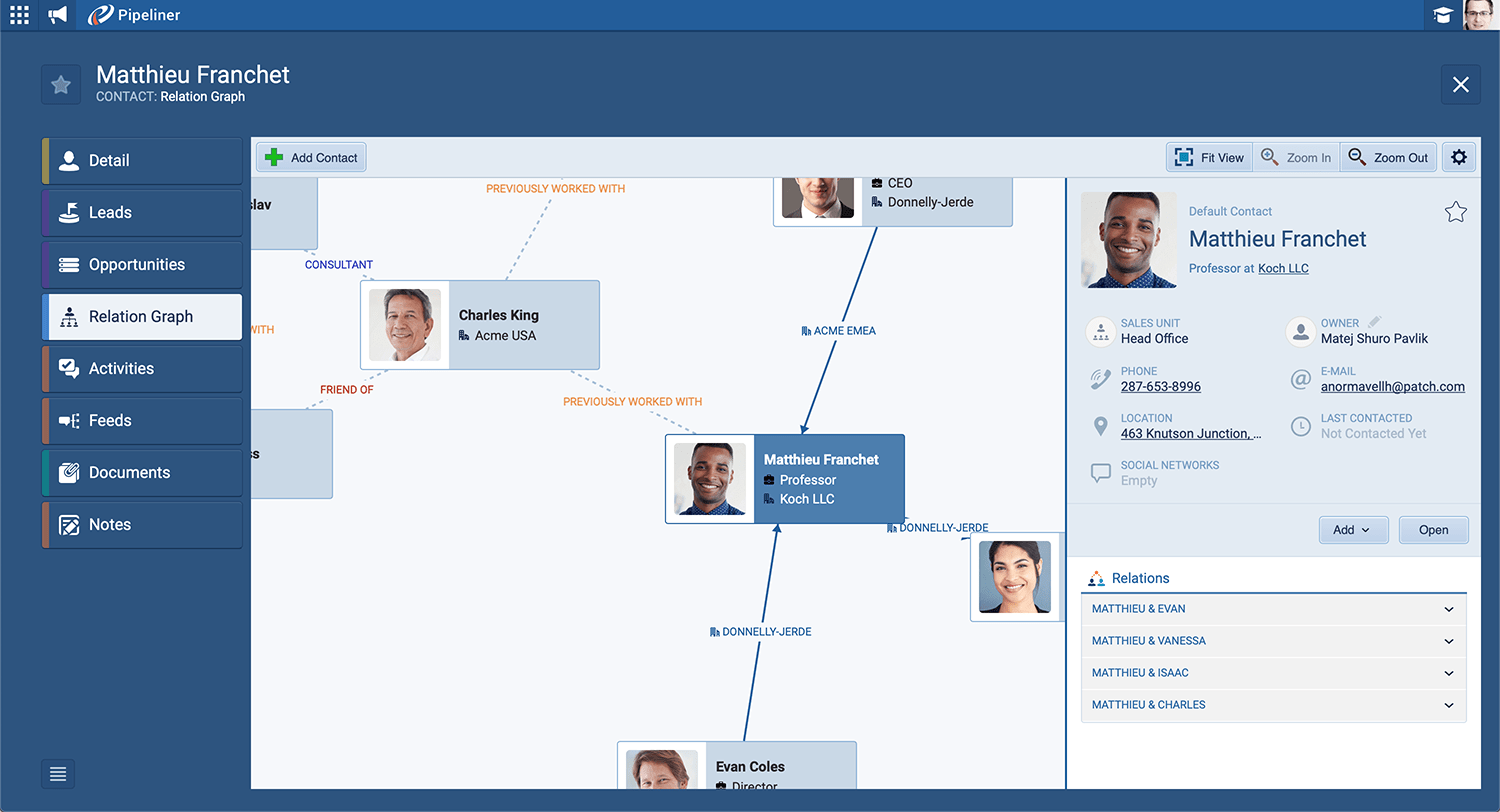 Success isn’t just about what you know, but who you know. Pipeliner CRM helps you navigate the complex web of every organizationOrganization Organization is a cohesive group of people working together and formally bound by a shared identity (e.g., one team, company, club, etc.) and a common purpose (e.g., business growth, athletic victory, etc.). with surgical precision.