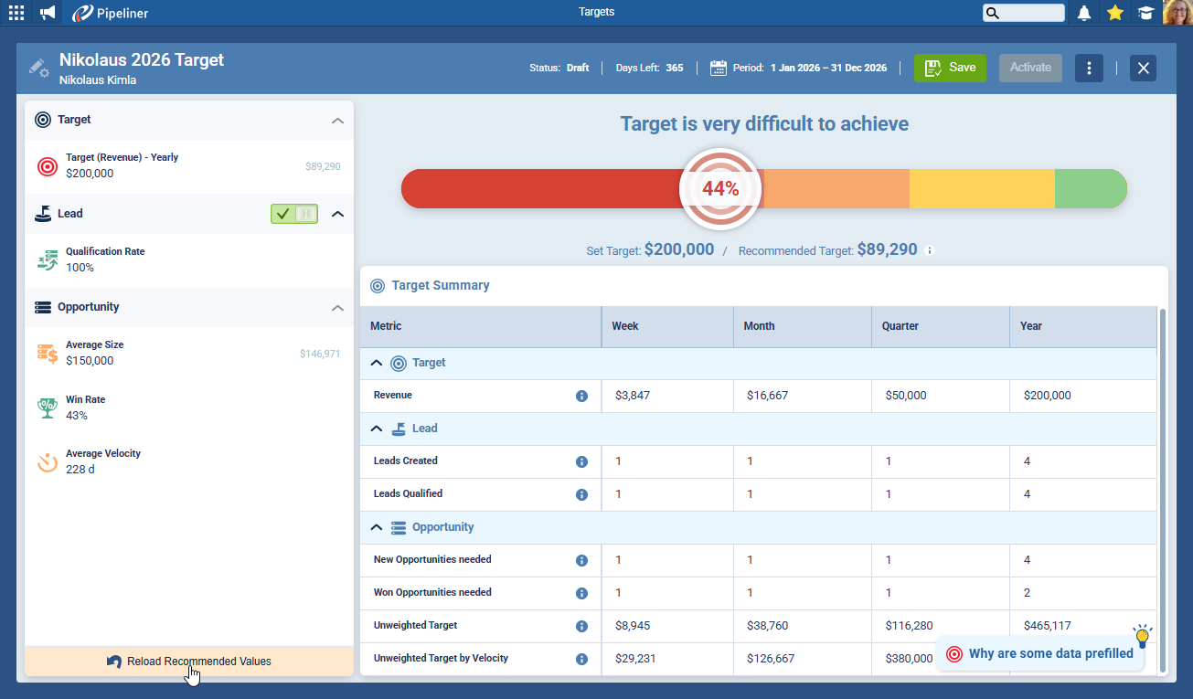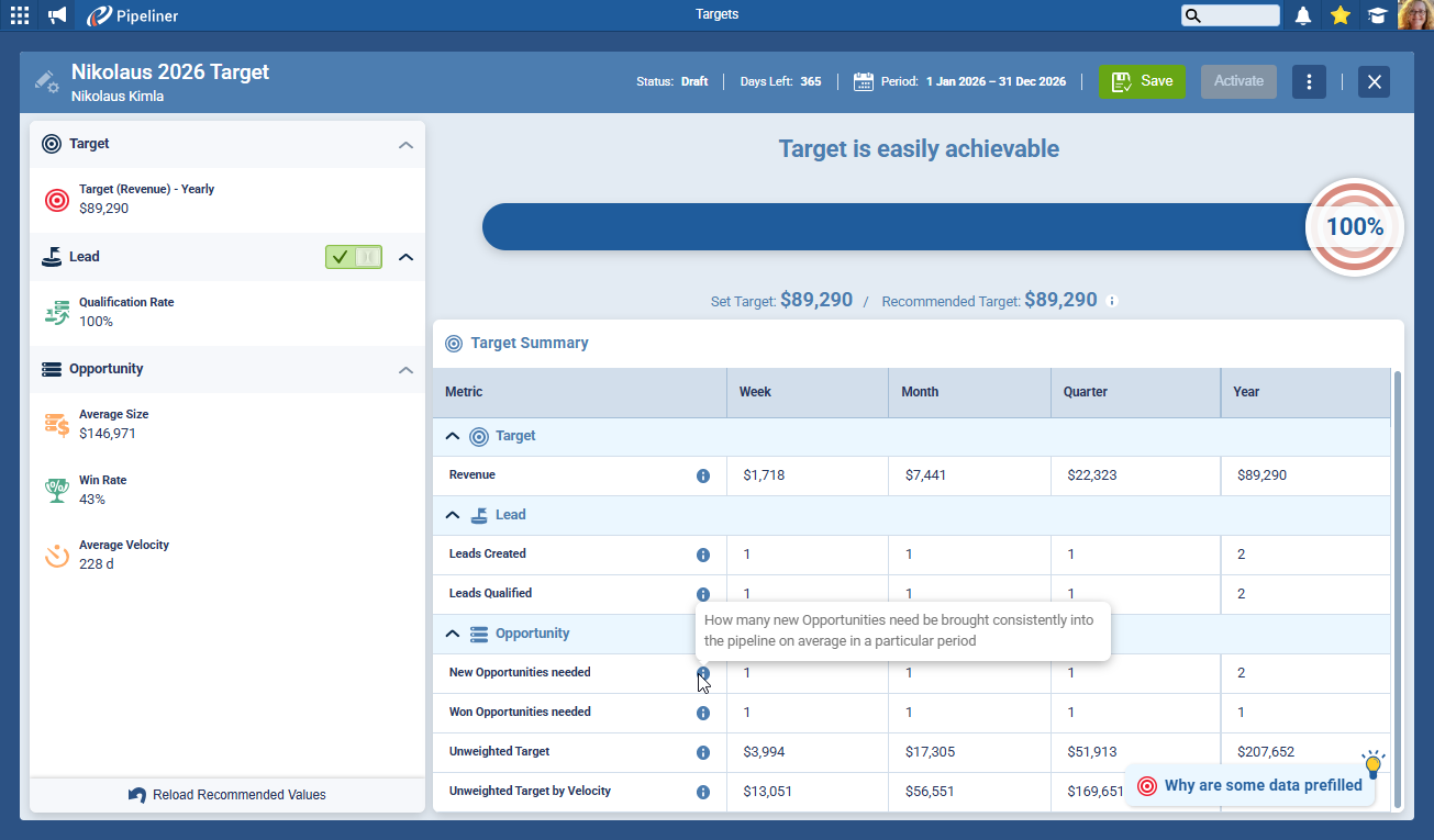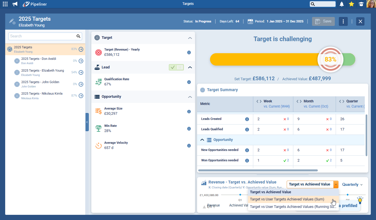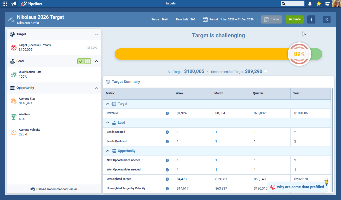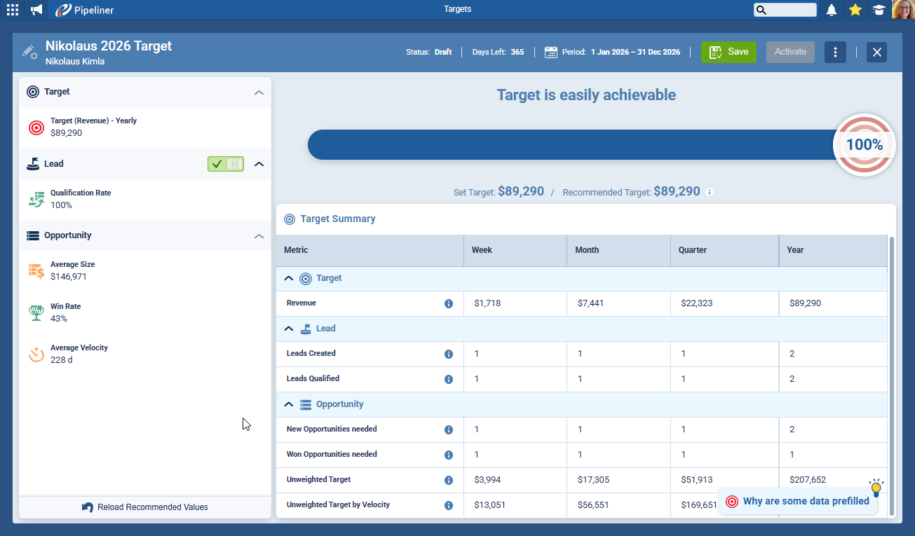 The Dynamic Target is fully integrated into the Pipeliner CRM ecosystem, turning standalone data points into a cohesive performance system.