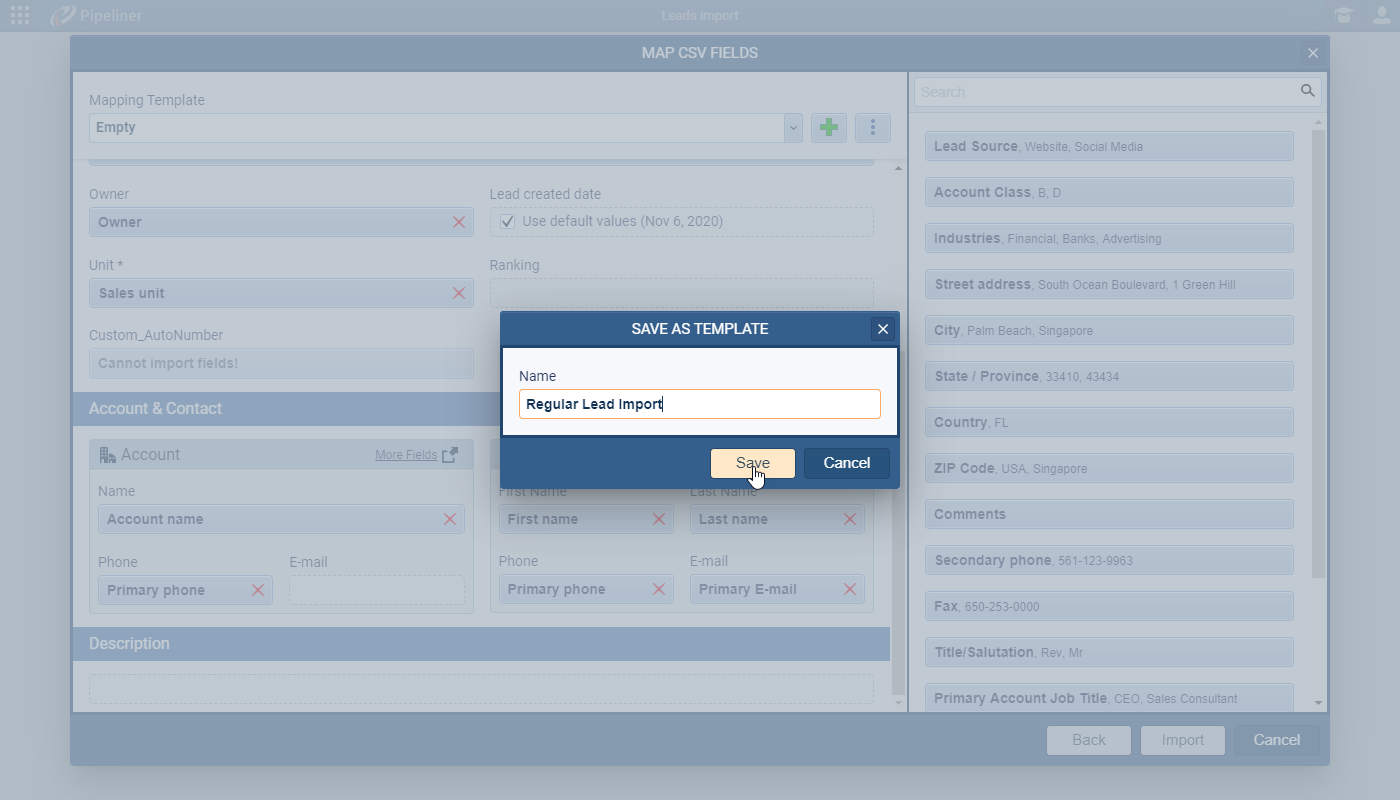 - Map Your Fields: Our innovative system guides you in mapping your file’s columns to the correct Pipeliner CRM fields.