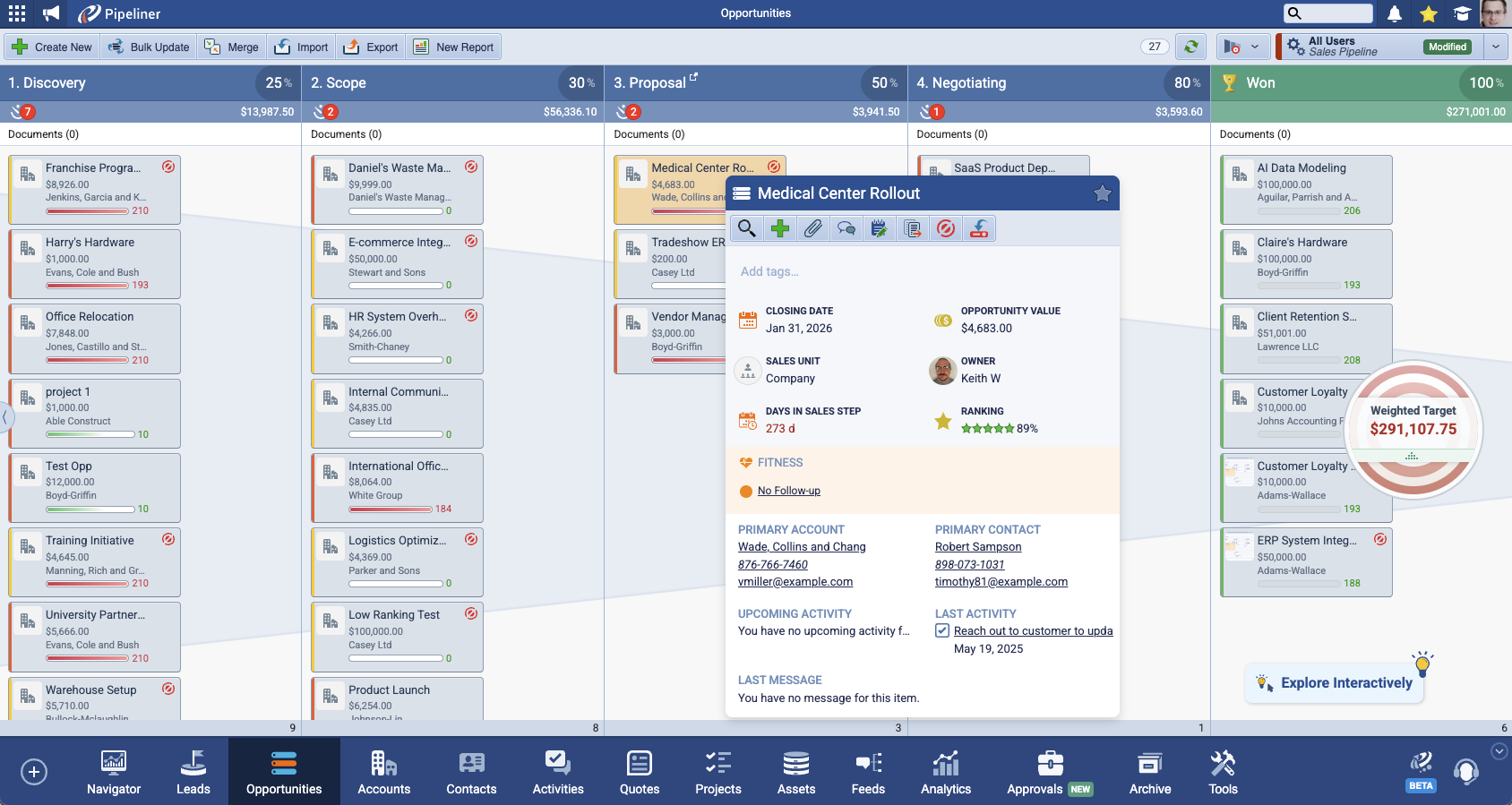 - Weighting (Probability of Closure): This is the percentage you assign to each stage (e.g., 25% for Discovery, 75% for NegotiationNegotiation Negotiation is a strategic dialogue, discussion, or bargaining process between two or more parties with the goal of reaching a mutually acceptable agreement.). When combined with the deal value, it calculates your Weighted Forecast—a far more accurate prediction of potential revenue than just totaling all deal values.