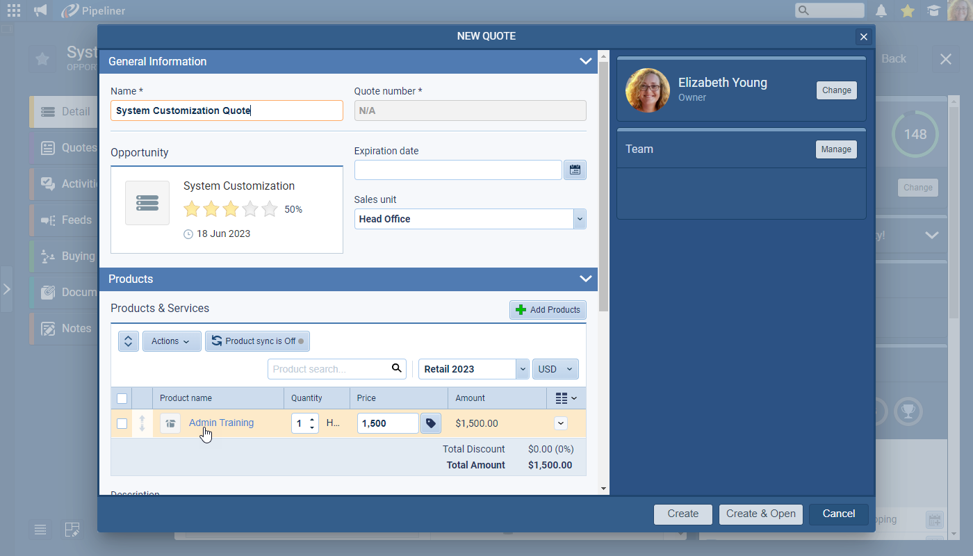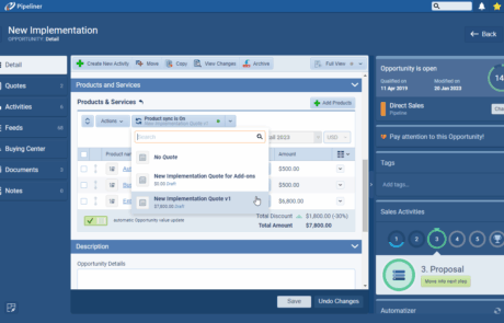 - Future-Proof Your Deals with Multi-Option Quoting: Pipeliner CRM offers Multi-Option Quoting and Revision Control. Create multiple, distinct quotes linked to a single Opportunity, allowing you to present different productProduct Product refers to anything (an idea, item, service, process or information) that meets a need or a desire and is offered to a market, usually but not always at a price. or service bundles without confusion. This ensures you always have the right option ready to secure the win, while our revision tracking helps manage every amendment.