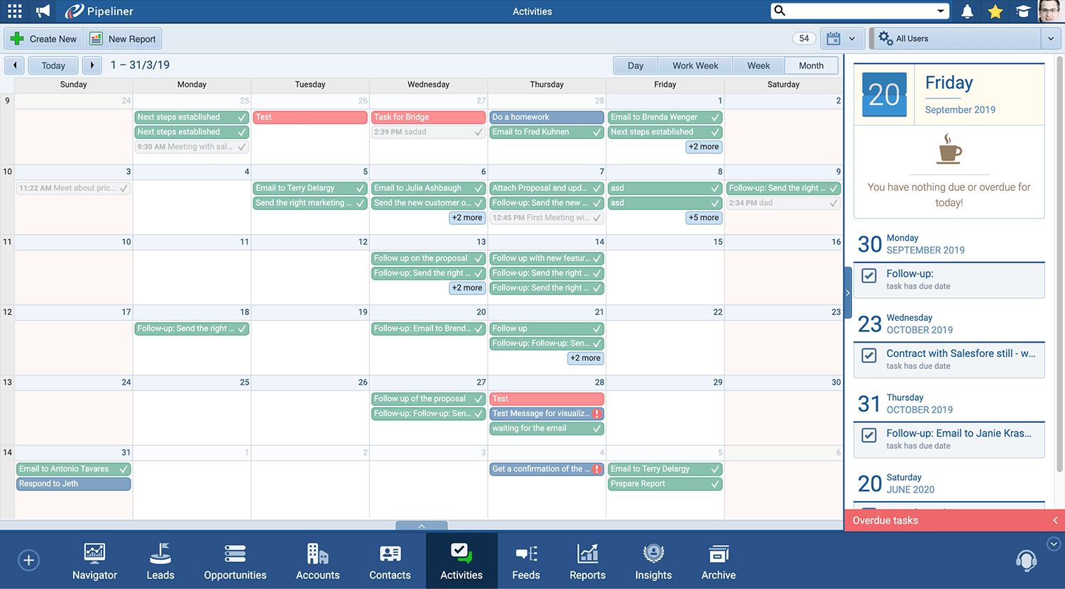 Filter options allow you to filter and view tasks, contacts, accounts, leads and opportunities based on any field.