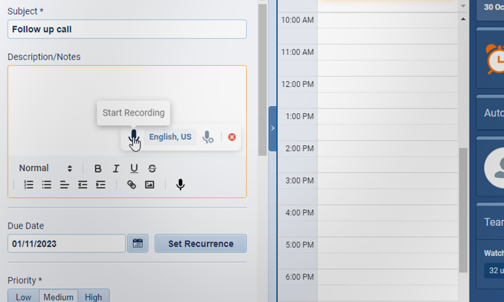 Maximize productivity with Pipeliner CRM’s AI Speech. Reclaim hours by instantly transcribing notes and emails, using AI to refine content for total data accuracy and seamless sales workflows.