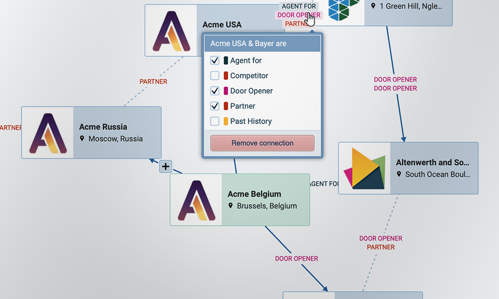 Accounts Relations: Visualize complex company connections (like partners & suppliers) with the Relation Graph. Gain strategic account intelligence.