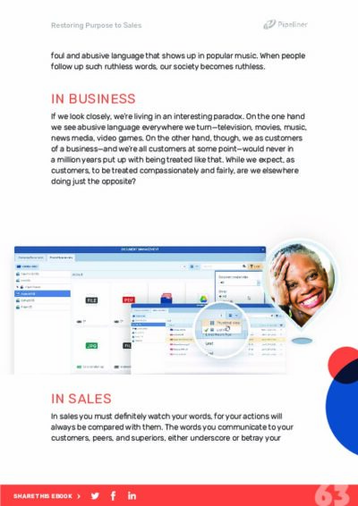In this ebook, we’ve been talking about bringing honorable purpose back to being a salesperson. When aiming for their true goals, we’ve seen that salespeople create wealth and bring peace.