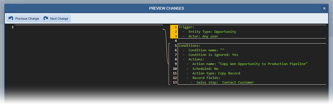 Note that for manually-created processes, users can now access the Preview Changes option to review prior to publishing or publishing and activating as normal.
