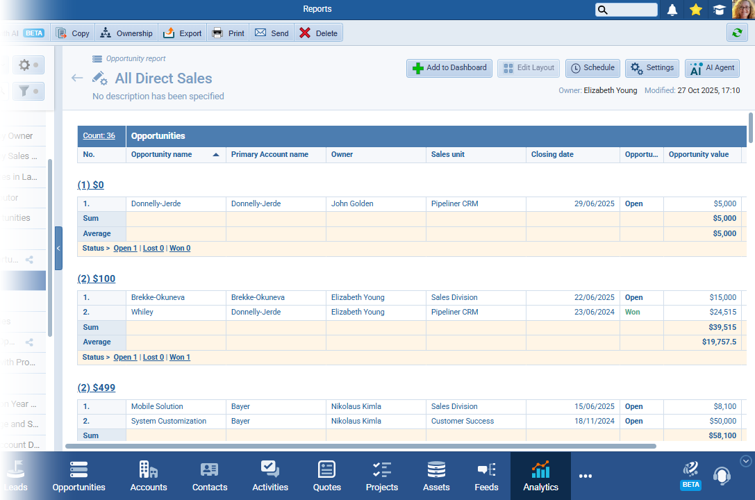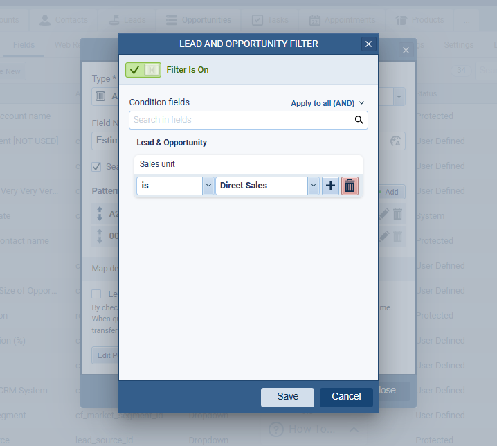 - For the "Lead" and "Task" entities, the dropdown list of users include an empty value to represent "Unassigned".