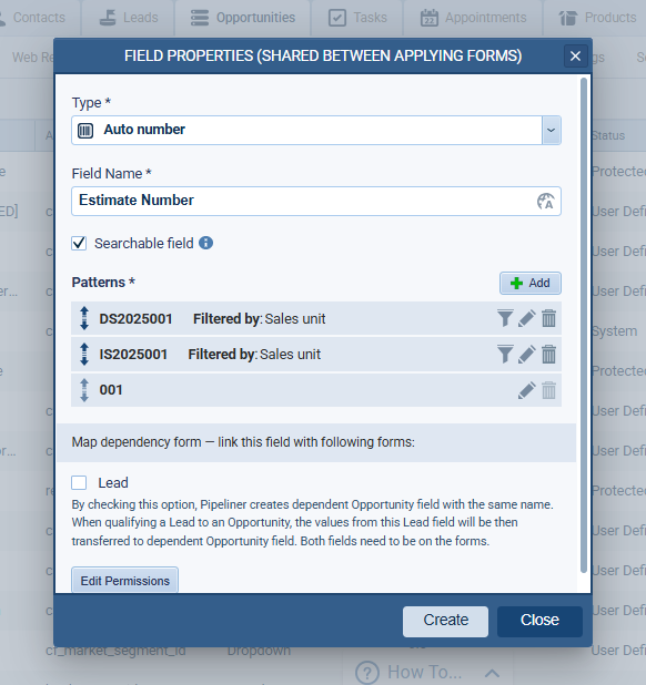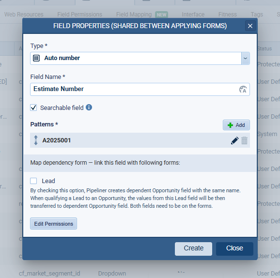 When creating an Auto number field with more than one pattern, a warning dialog will be displayed.