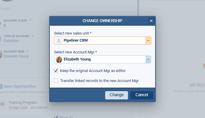 This feature extends the translation capabilities of the application to the "Owner" label. When an administrator renames the "Owner" field for a specific entity in Admin Translations, the new term will be reflected consistently across various UI components, including record detail views and the "Change Ownership" dialog. If no custom translation is set for an entity, the default label "Owner" should be used.