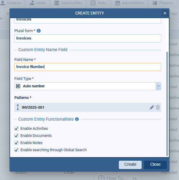 This feature overhauls the Auto number field functionality, replacing the single "Structure" definition with a more powerful, filterable "Patterns" system. This allows for multiple, conditional auto-numbering formats to be applied based on record data, providing greater flexibility for complex numbering requirements. The changes apply to both standard custom fields and the name field of custom entities.