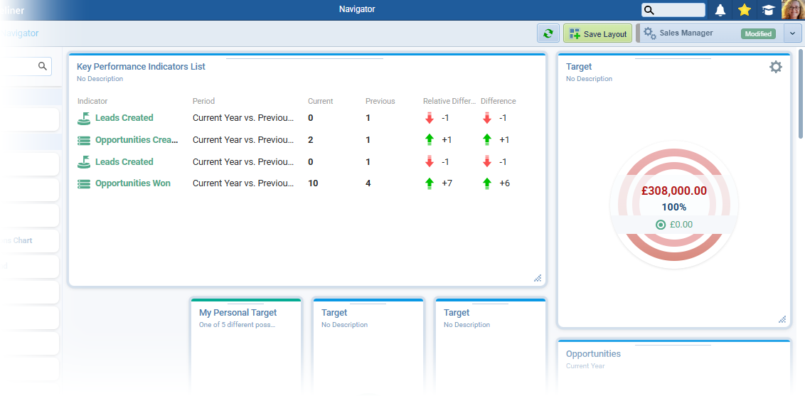 - A percentage value indicating progress towards the target is also displayed. If the achieved value exceeds the target, this percentage will be over 100%.