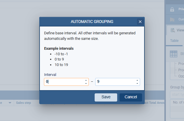 - Float fields: The start of the new interval is the same as the end of the previous one.