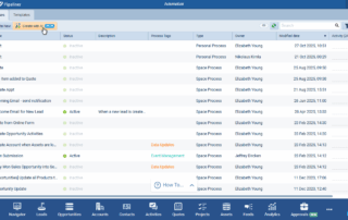 | Actions | Create Record, Create Related Record, Update Record, Update Related Record, Link Record as Related, Send Email, Archive Record, Enroll/Unenroll in Email Sequence, Trigger Another Process, Copy Record, Change Ownership. |