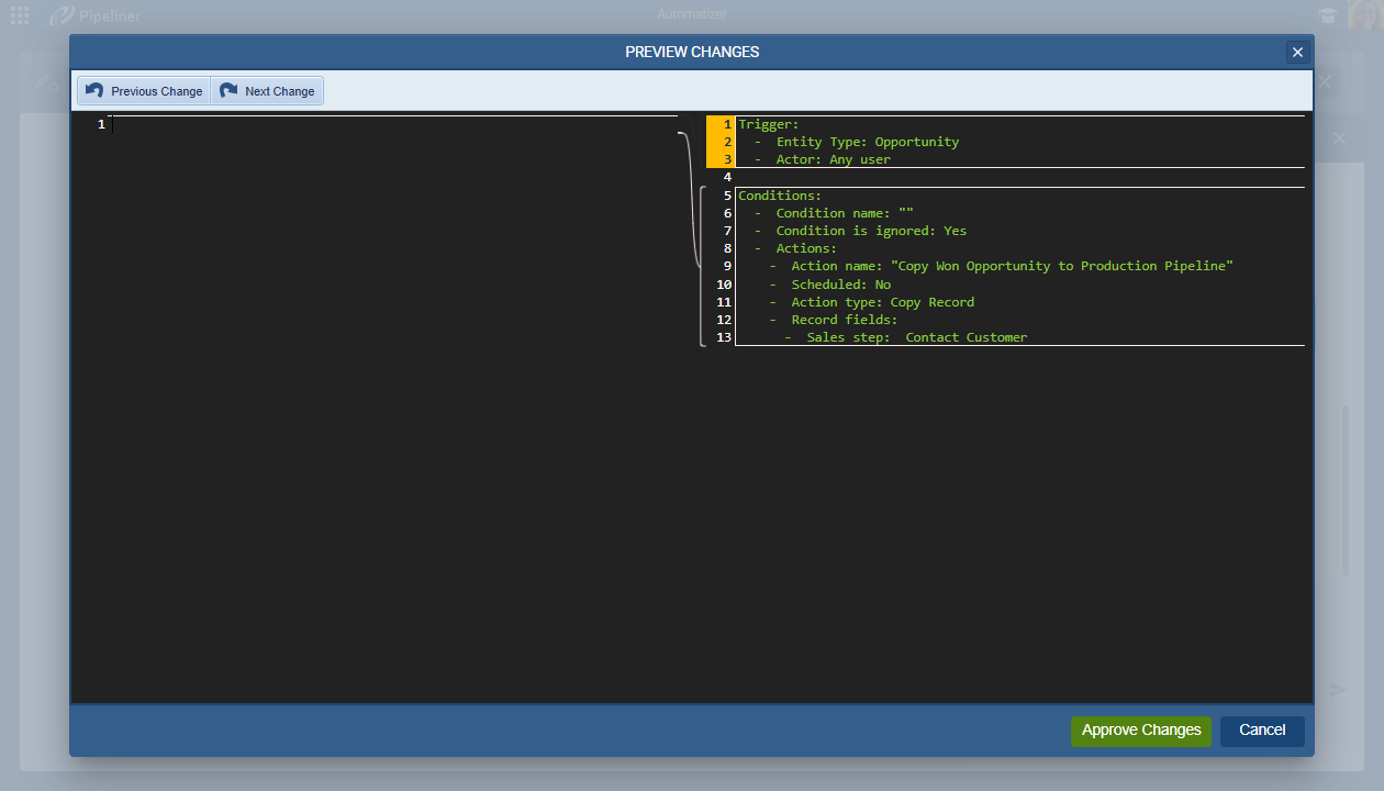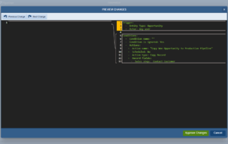 Note that for manually-created processes, users can now access the Preview Changes option to review prior to publishing or publishing and activating as normal.