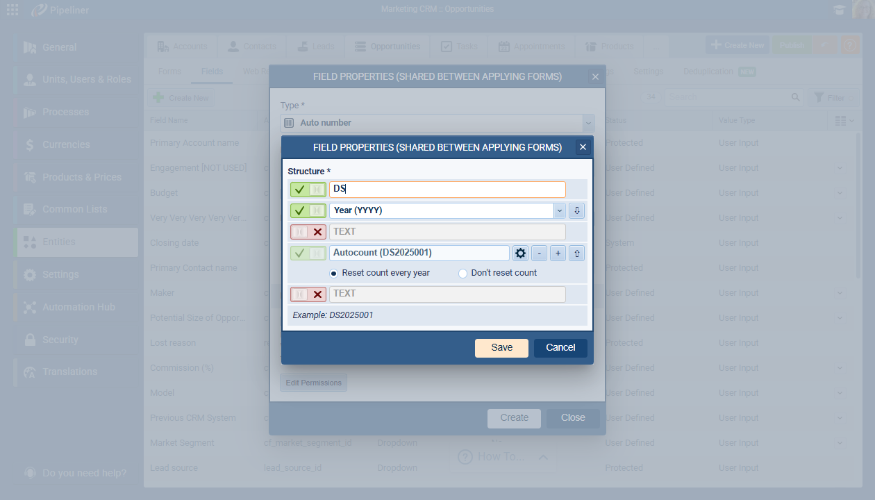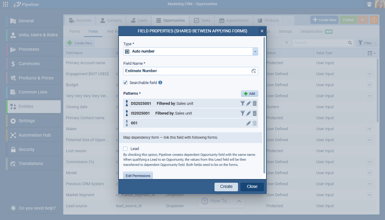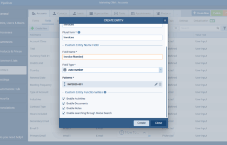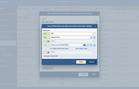 This feature overhauls the Auto number field functionality, replacing the single “Structure” definition with a more powerful, filterable “Patterns” system. This allows for multiple, conditional auto-numbering formats to be applied based on record data, providing greater flexibility for complex numbering requirements. The changes apply to both standard custom fields and the name field of custom entities.