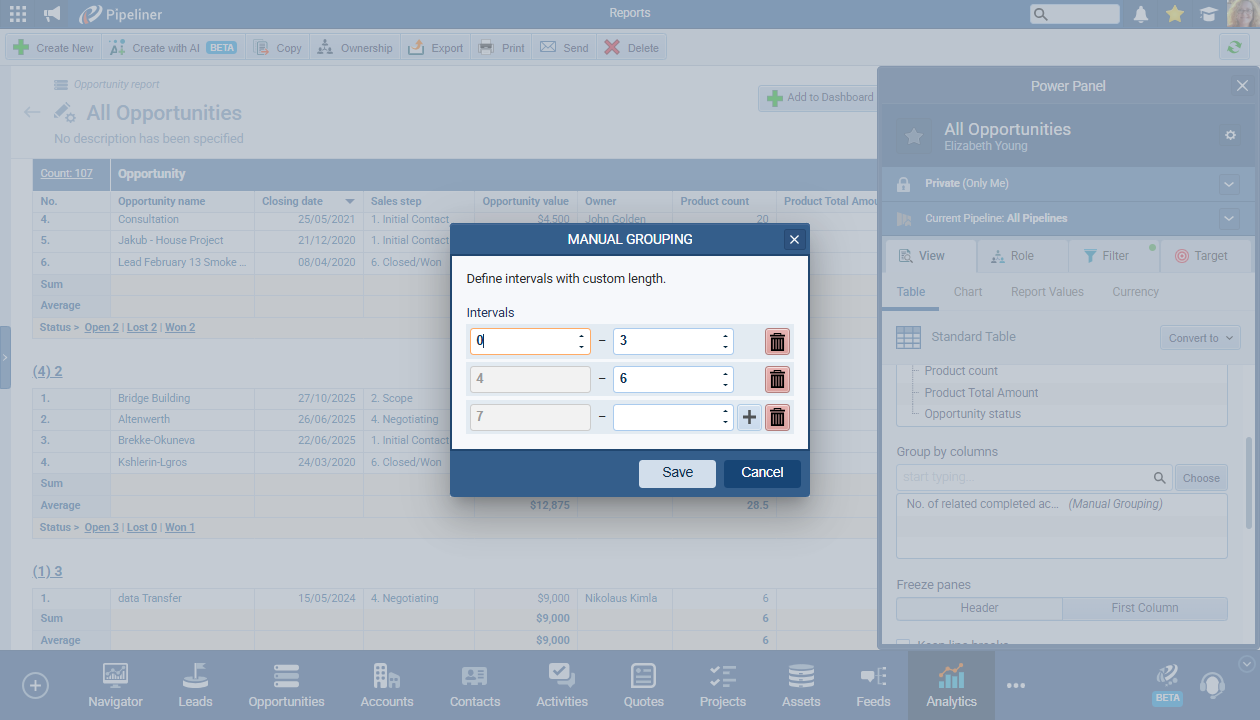 - Users can add new intervals. An “Add” action is enabled on the last interval if its end value is defined.