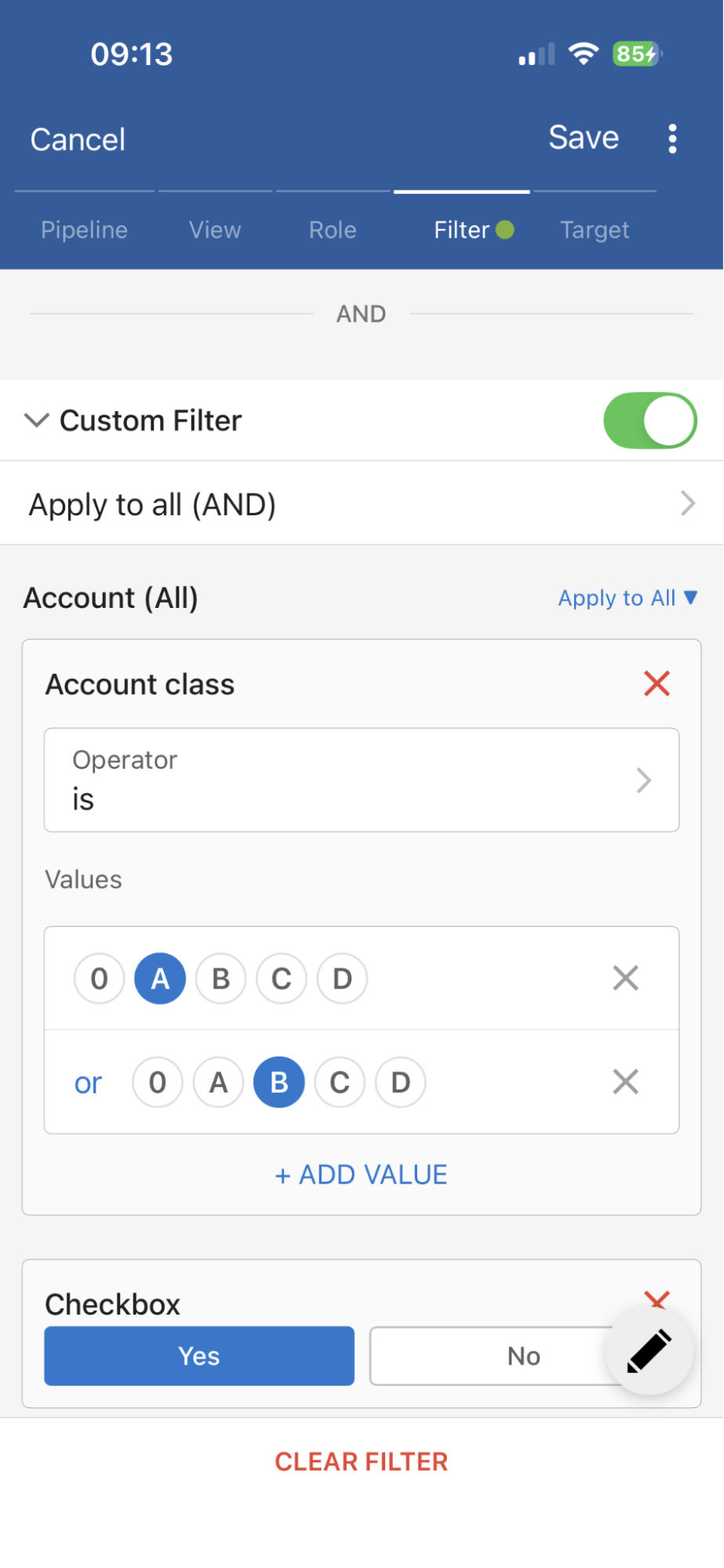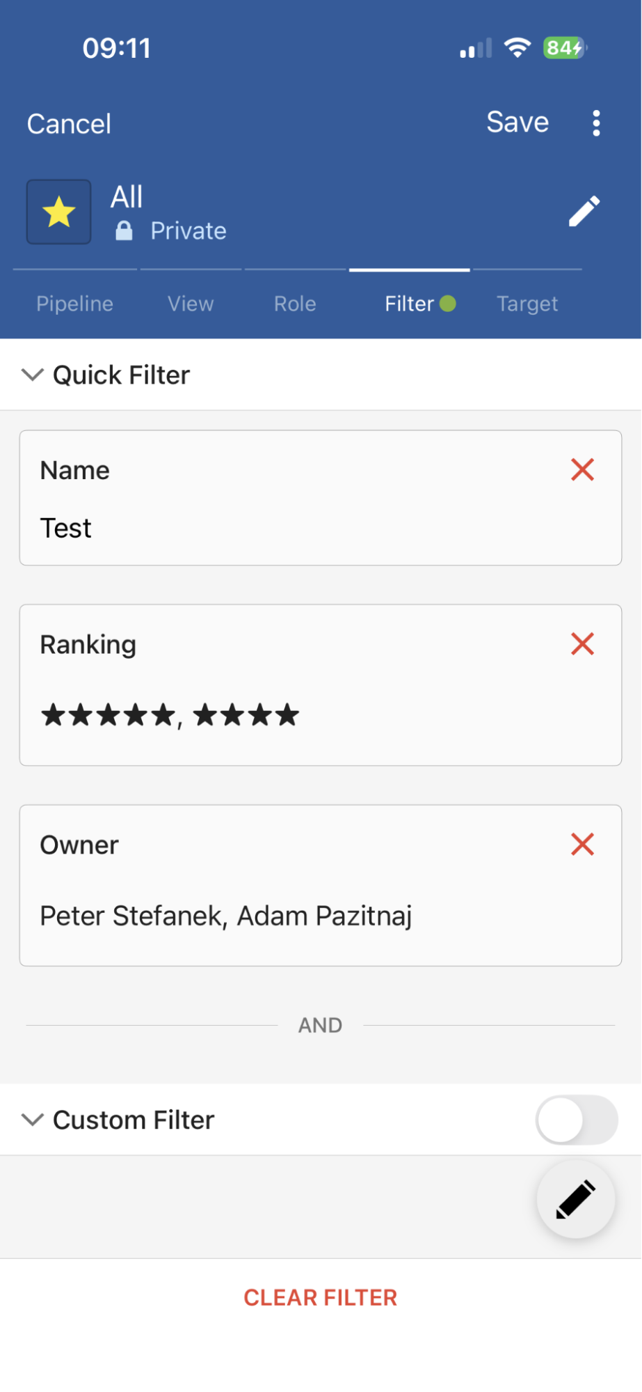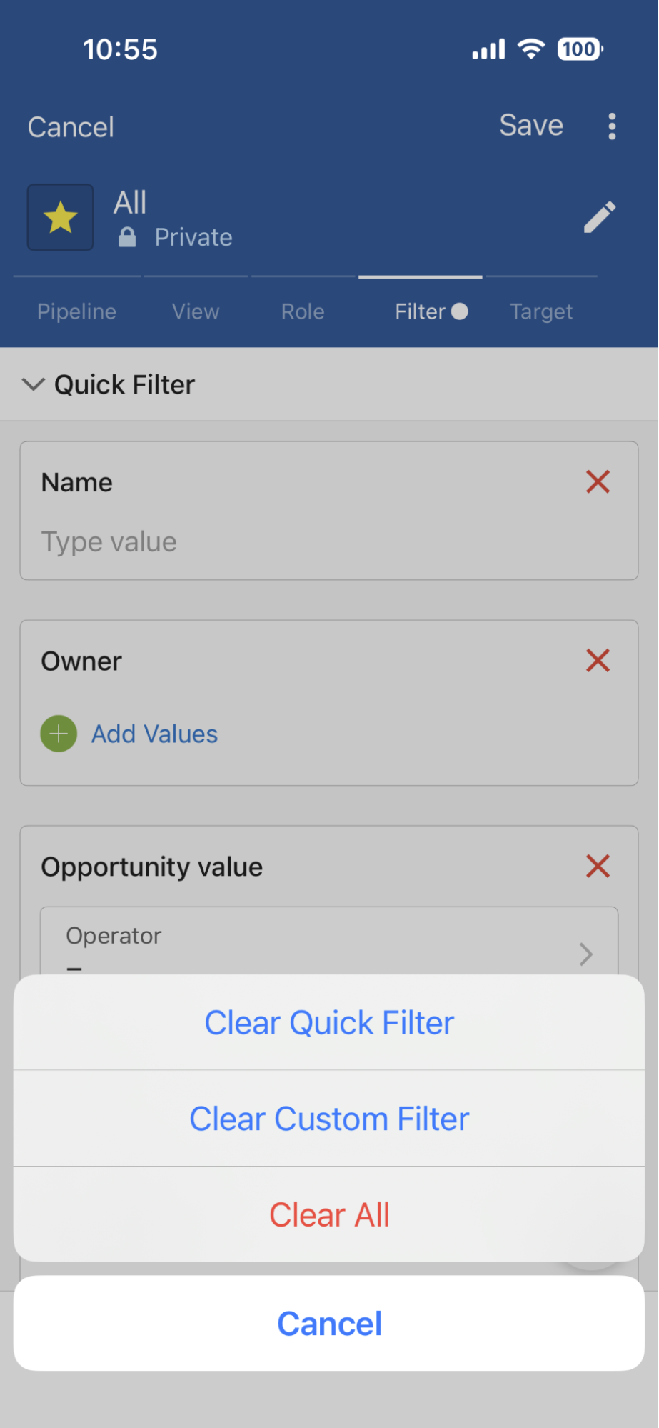 - Clear Filter has become a sticky button that provides options to clear Quick Filter, Custom Filter, or both with one tap.