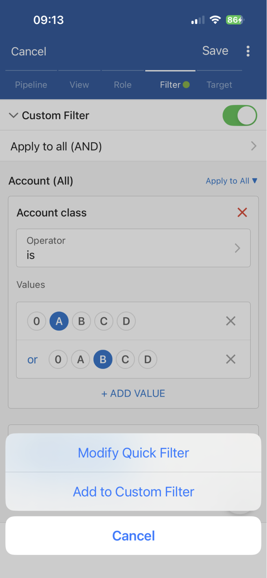 Both Filters can be managed via a “pencil” button that replaced the previously existing “+” button, offering options to “Modify Quick Filter” or “Add to Custom Filter“. ⤵