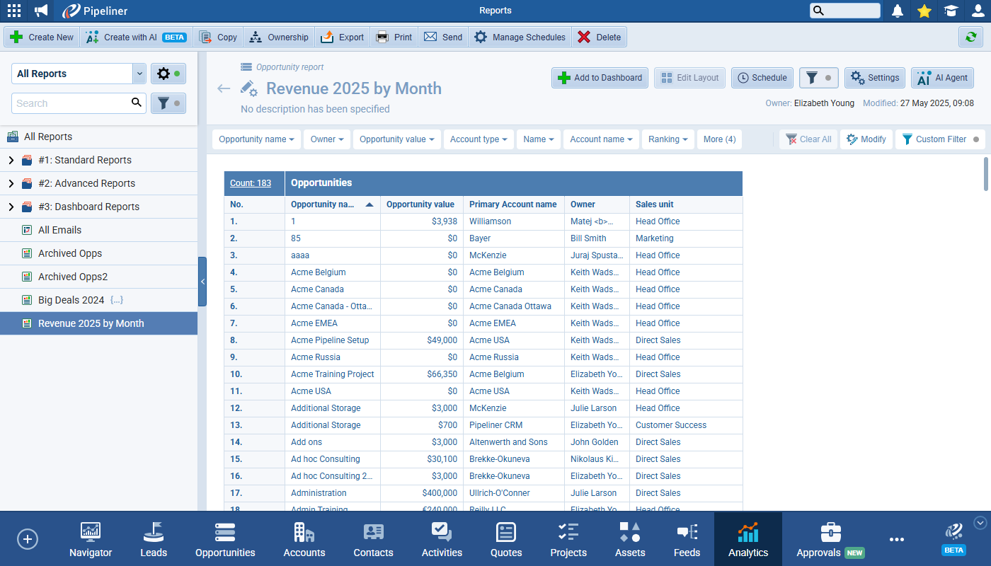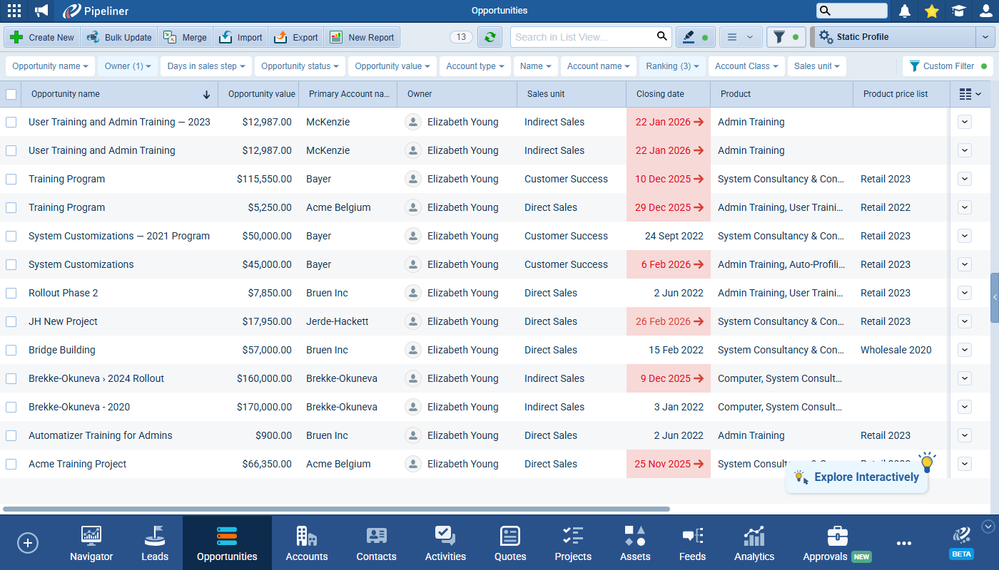 Some system fields are never empty in Pipeliner — Ranking, for example or AccountAccount Account refers to a record of primary and background information about an individual or corporate customer, including contact data, preferred services, and transactions with your company. Class — but in order to support Quick Filters, these fields now have an “unselected state”. ⤵