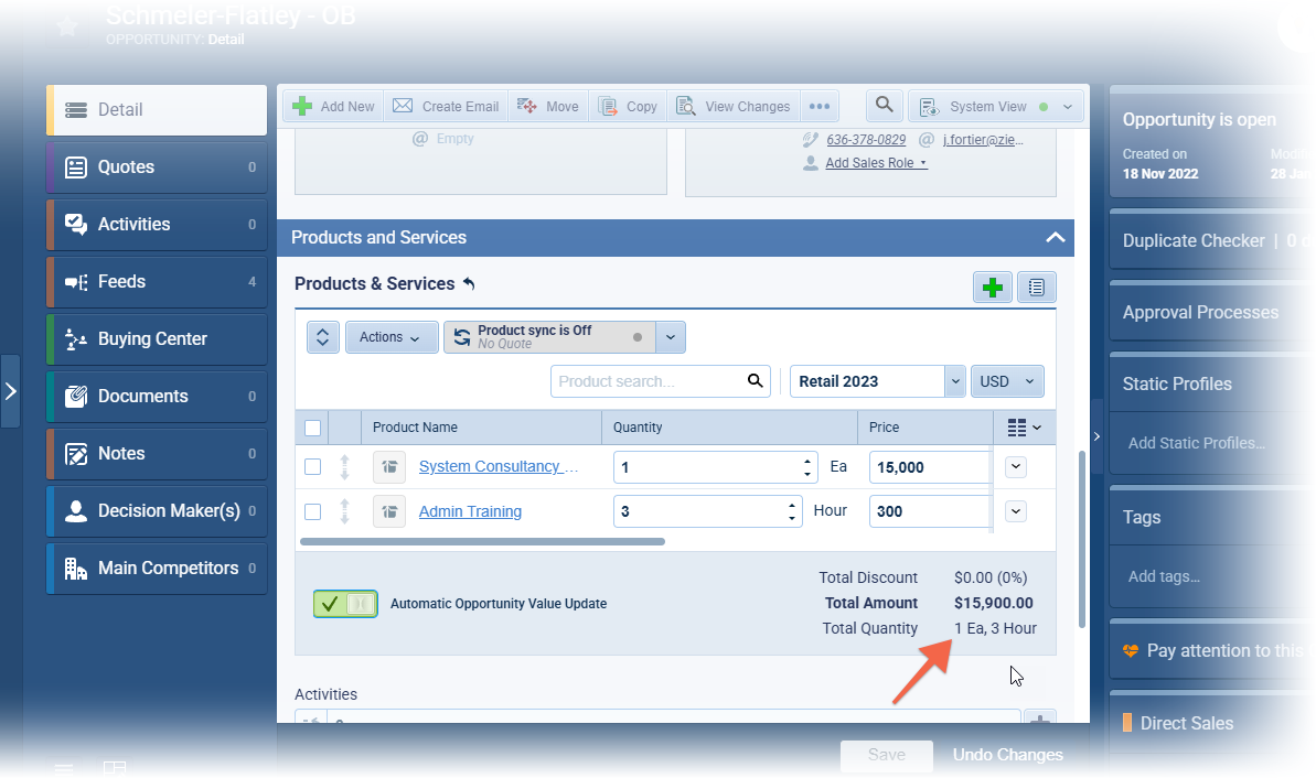 Based on customer feedback, we’ve added a “Total Quantity” summary to the “Products & Services” table for better visibility when managing Opportunities.