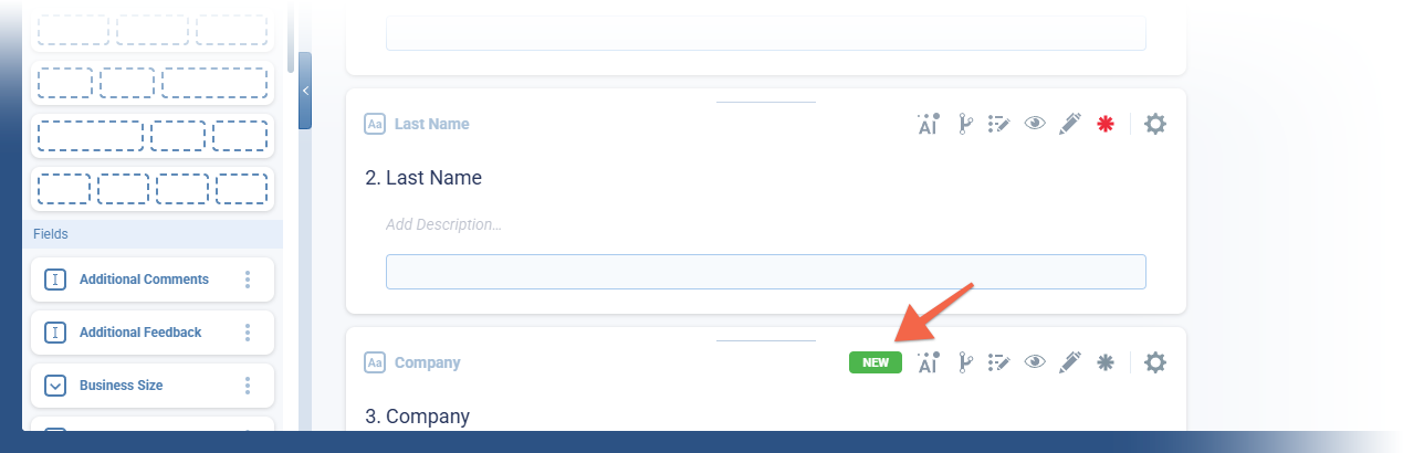 Closing the suggestions panel will then display the draft form. Fields that have been newly created by the AI Agent will be flagged as “New“.
